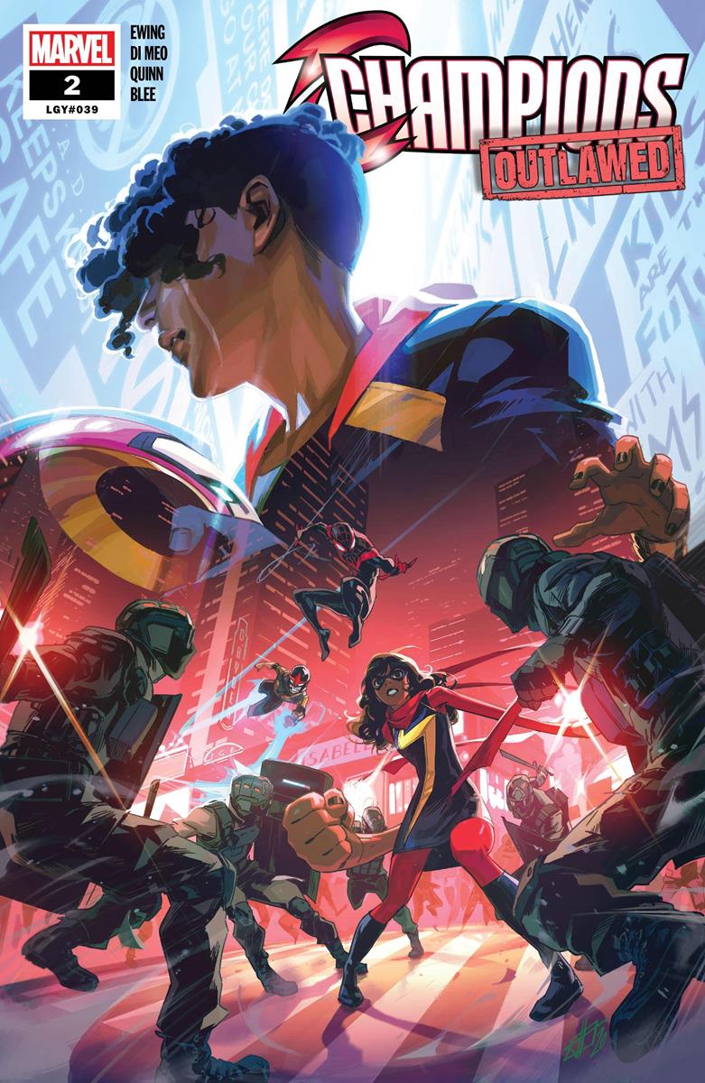 Ironheart on the secure Champions phone but gets no answer. Sam can't wait. He rockets down and the other 2 reluctantly follow him to keep him out of trouble. Nova tells everyone to vacate the area but a pro-Law protester throws a can at him. CRADLE move in to arrest the